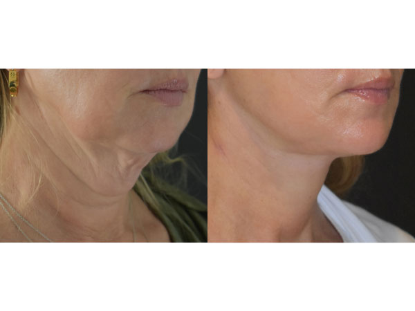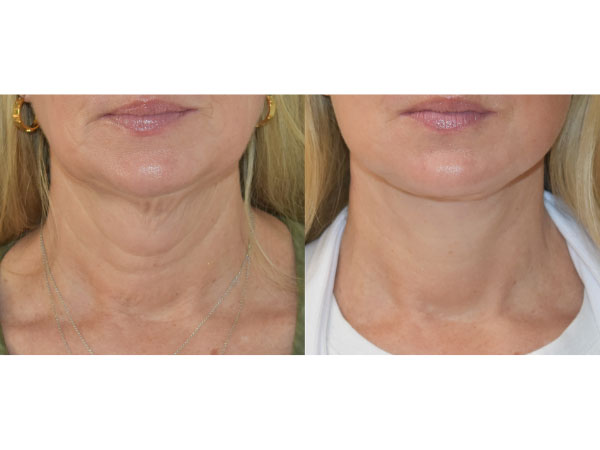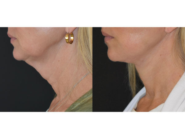 53 y/o with deep plane facelift and necklift. Prior energy-based skin tightening device treatments had failed to address her loose neck tissue, and so she opted for surgery to help reposition and lift the tissue and skin. She was thrilled with her surgical outcome that showcased her jawline again. She is pictured here 2 months after surgery.